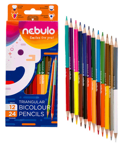 Kétvégű háromszög színes ceruza készlet, 12 db => 24 szín.