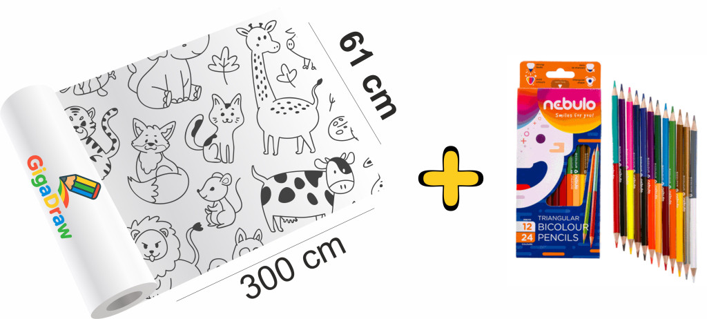 A Giga Draw színező hatalmas méretével igazi gyerek kedvenc: 300 × 61 cm-en rengeteg izgalmas minta vár, amit akár egyszerre több gyerek is színezhet.