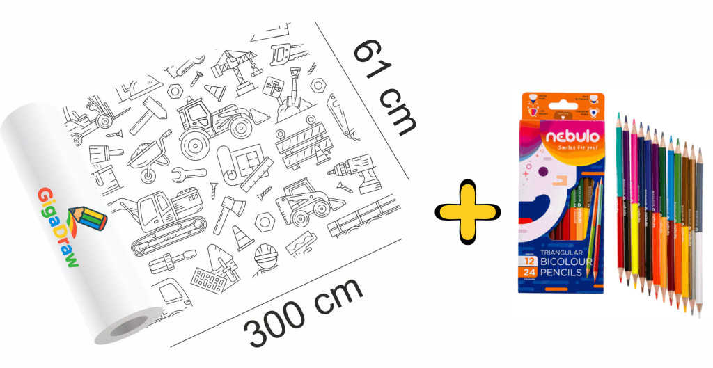 PLUS csomaggal a ceruzák segítségével életre kelnek a hatalmas sárga markolók, a piros traktorok és a színes teherautók. A vastag heggyel könnyen kiszínezhetik a nagy gépkarokat, a vékonyabbal pedig a részleteket, mint a kerekek vagy ablakok.