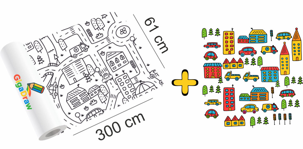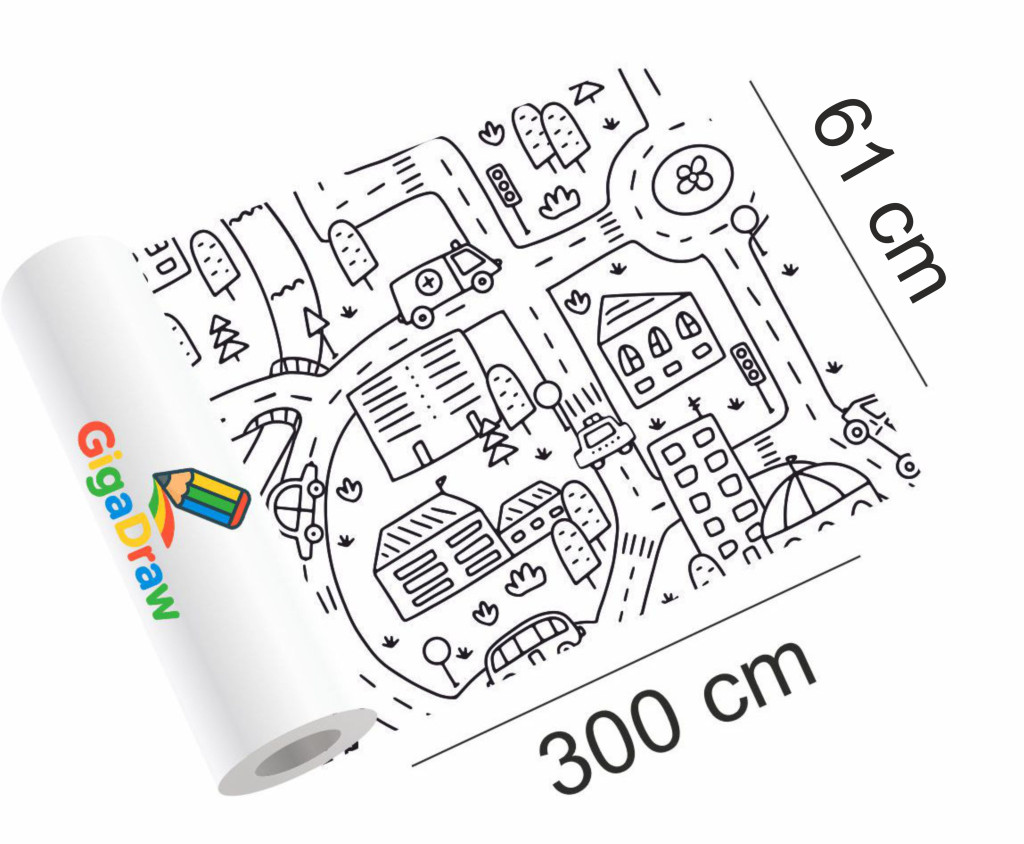 A Giga Draw színező hatalmas méretével igazi gyerek kedvenc: 300 × 61 cm-en rengeteg izgalmas minta vár, amit akár egyszerre több gyerek is színezhet.
