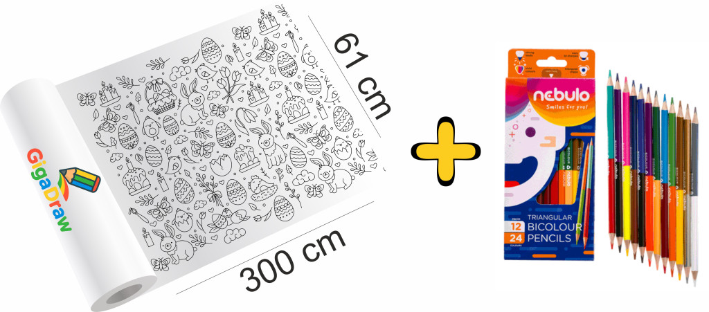GigaDraw Easter Óriás színező 12 db-os kéthegyű ceruza készlettel Plus csomag