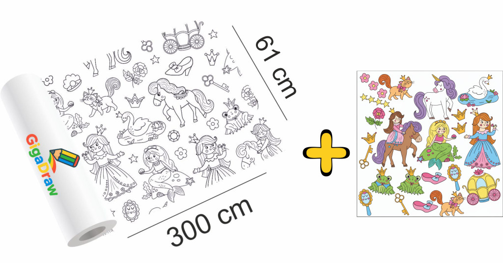 A Giga Draw színező hatalmas méretével igazi gyerek kedvenc: 300 × 61 cm-en rengeteg izgalmas minta vár, amit akár egyszerre több gyerek is színezhet.