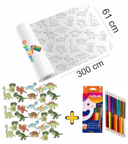 GigaDraw Dino Óriás színező + 12 db-os kéthegyű ceruza készlettel + matricaszettel Extra csomag